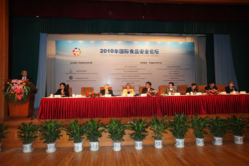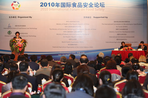 由國(guó)際食品科技聯(lián)盟和中國(guó)食品科學(xué)技術(shù)學(xué)會(huì)聯(lián)合主辦的“2010年國(guó)際食品安全論壇”于2010年4月22-23日在北京隆重召開,此次論壇以“風(fēng)險(xiǎn)管 理:概念與實(shí)踐”為主題,來自全球的近300位政府官員、科技專家、知名企業(yè)的代表參加了會(huì)議。論壇得到衛(wèi)生部、科技部、工業(yè)和信息化部、世界衛(wèi)生組織、 聯(lián)合國(guó)糧農(nóng)組織、國(guó)際食品微生物標(biāo)準(zhǔn)委員會(huì)、國(guó)際生命科學(xué)會(huì)等國(guó)內(nèi)外重要政府部門和機(jī)構(gòu)的支持。衛(wèi)生部部長(zhǎng)陳竺出席開幕式,并做重要講話。